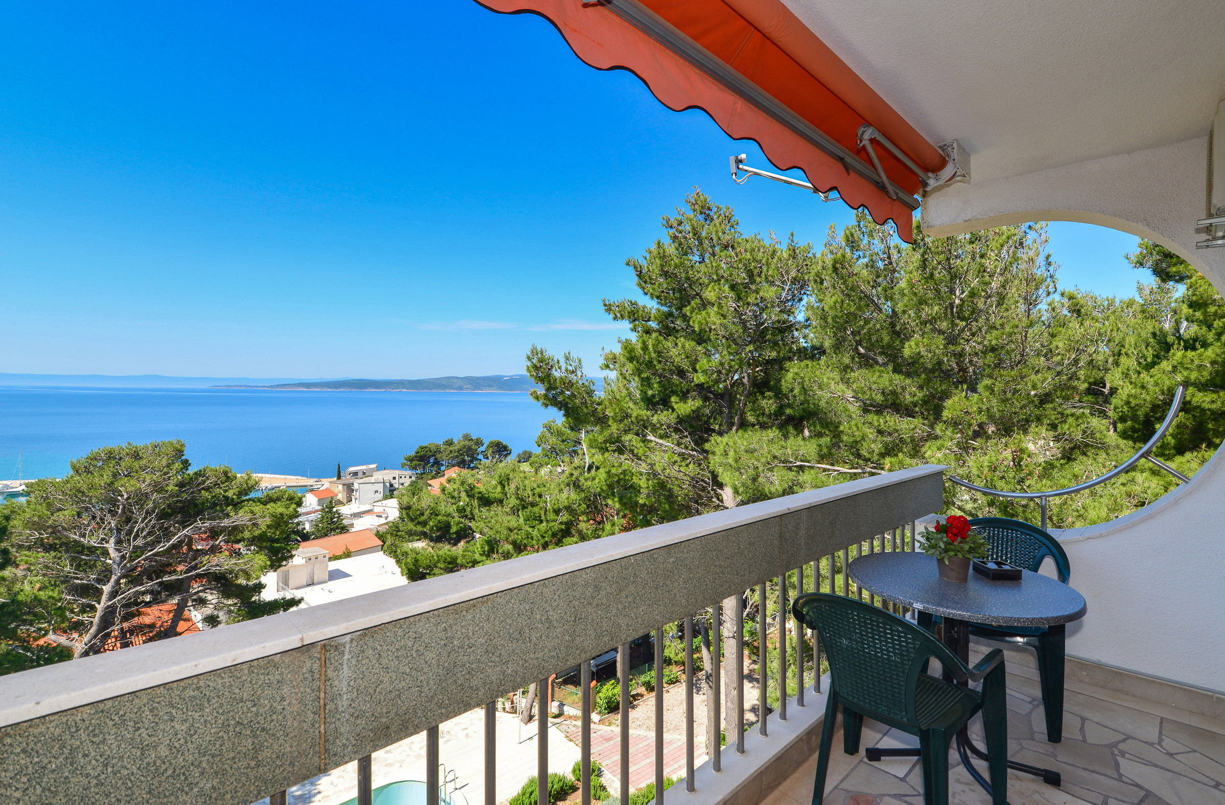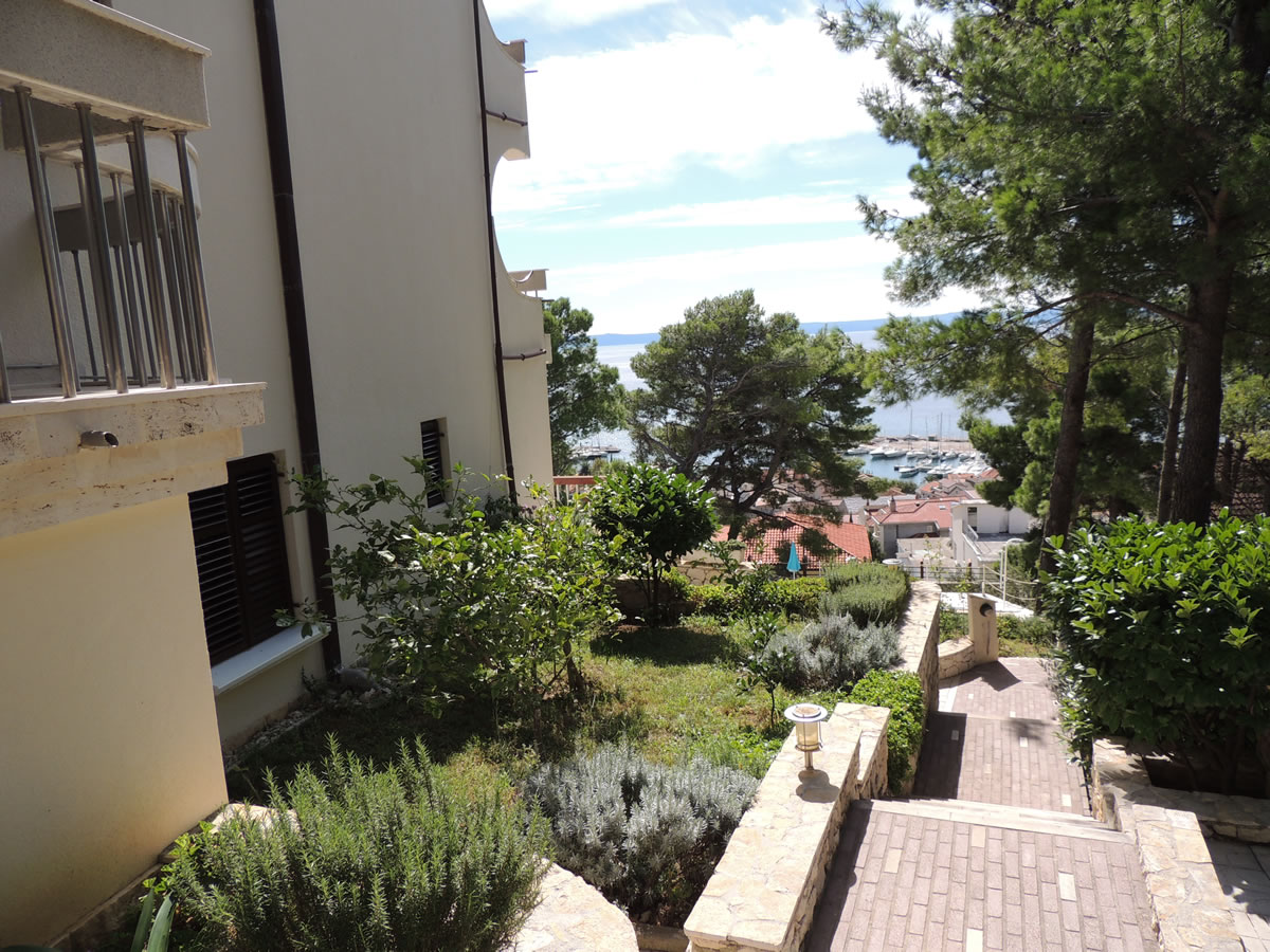 Villa Biokovo has sea view between pine trees - the comfortable house is located directly above the famous seaside resort Baska Voda. 3,000 sqm of land guarantee peace and quiet despite the city and a picturesque view of the sea. Apartments Villa Biokovo with a private heating pool is ideal for families, couples and group friends that will enjoy the stunning sea view.