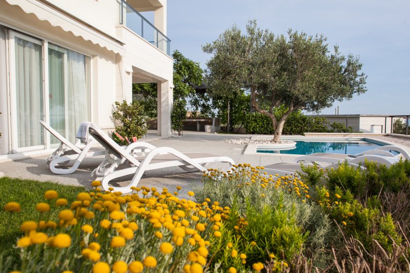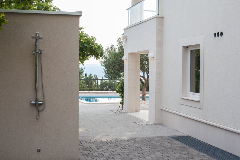 The villa is located in a beautiful and very peaceful natural setting surrounded by pine forests and olive groves with a beautiful view that stretches towards the Adriatic coast and Dalmatian islands of Brač and Hvar.