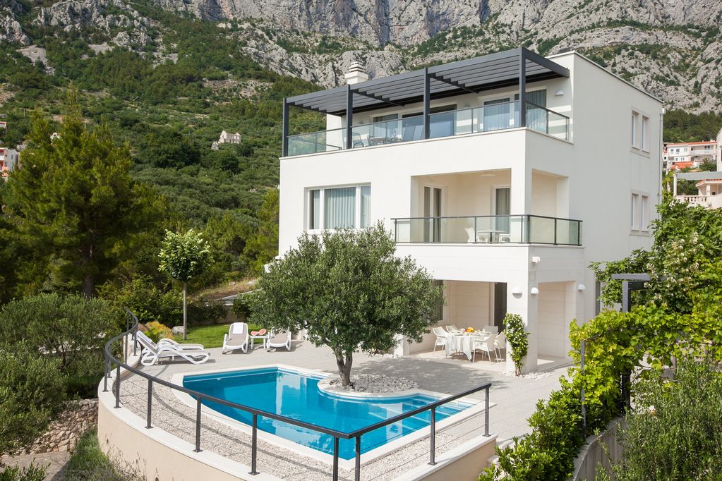 This modern villa with pool is located near Makarska in the village of Veliko Brdo at the foot of the mountain Biokovo, a protected natural park which hangs over the Makarska Riviera.