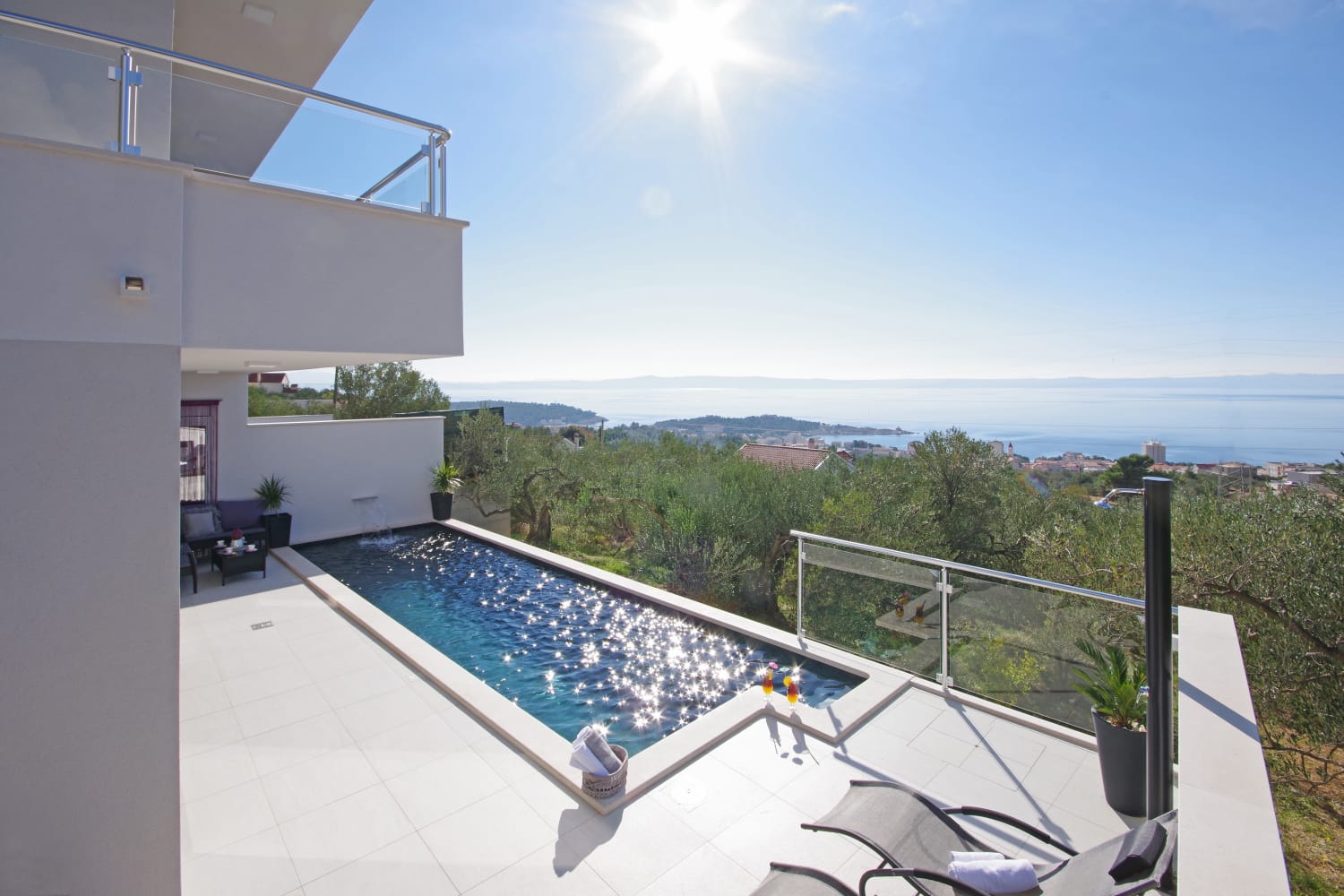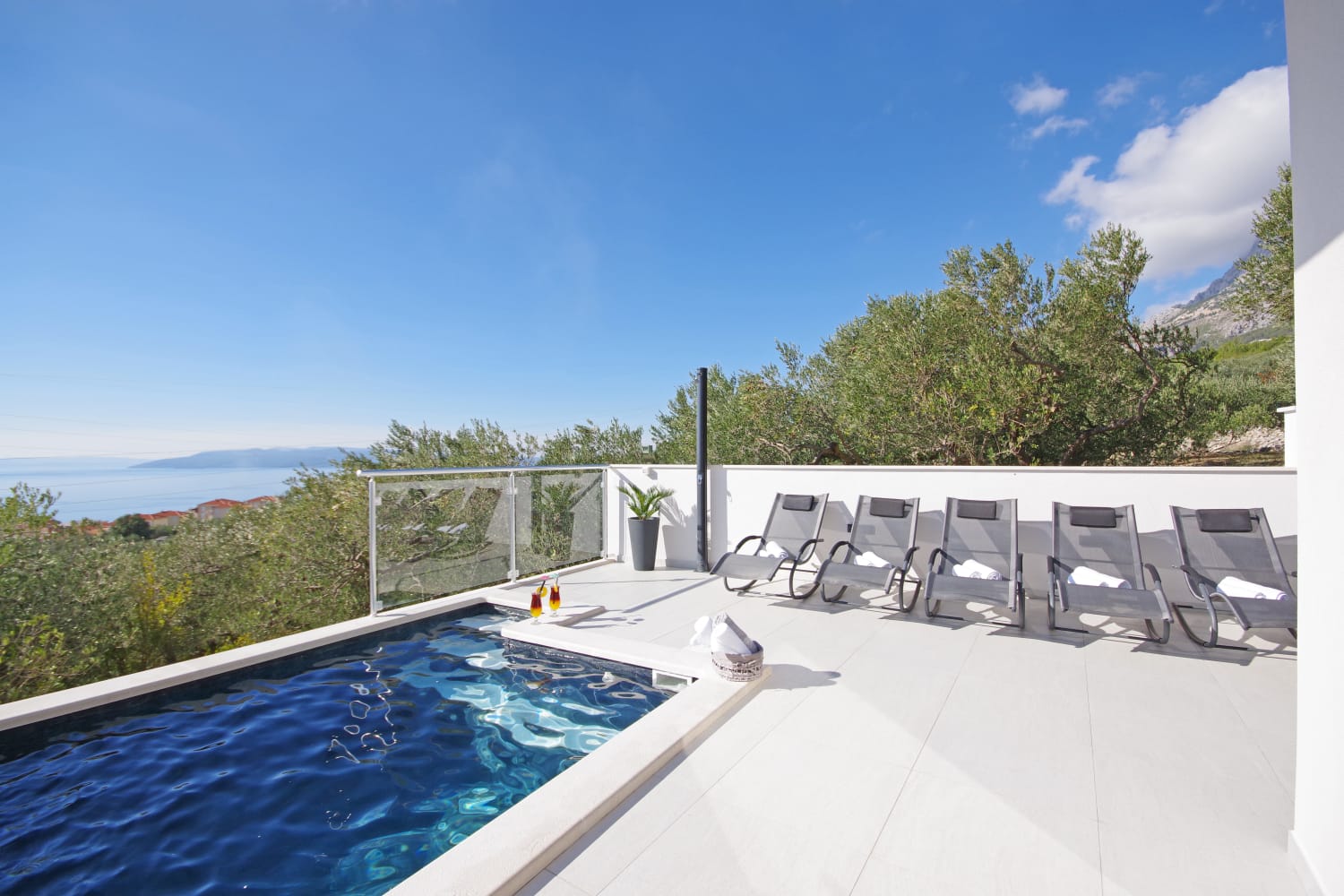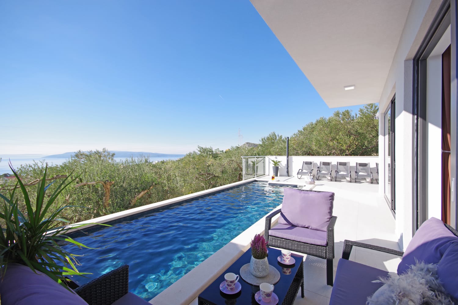 Villa Andy in Makarska with a heated pool is located in a quiet part of town with a fantastic view. The villa is surrounded by olive groves and pine forests, it is an ideal choice for a quiet holiday, away from the crowds and noise.