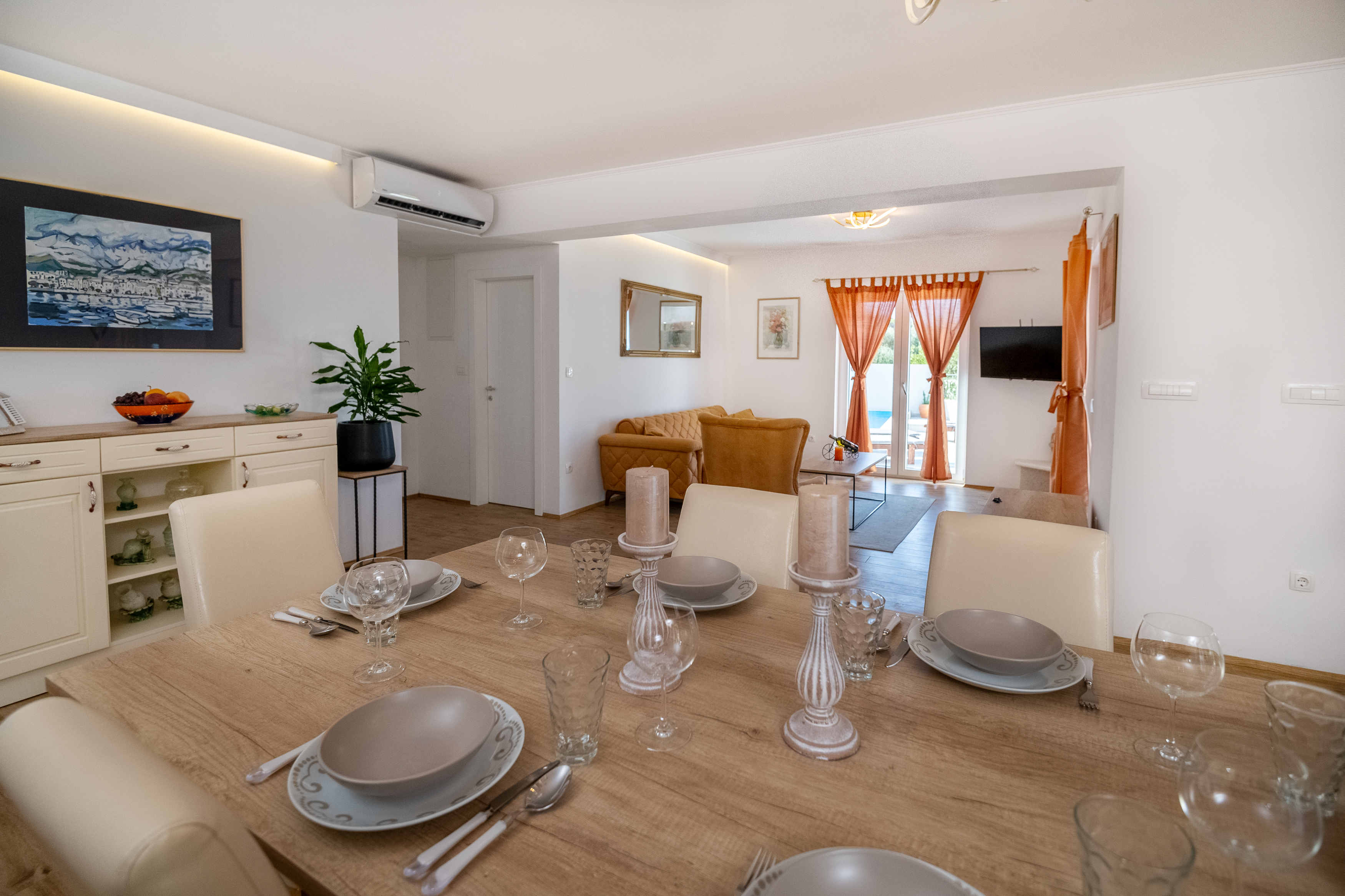 Located close to the botanical garden Kotišina and to a source of natural water, this villa offers an amazing vacation in nice and quiet area. With fanatastic panoramic view of Makarska and Adriatic sea, you will relax and enjoy summer time with your friends and family.