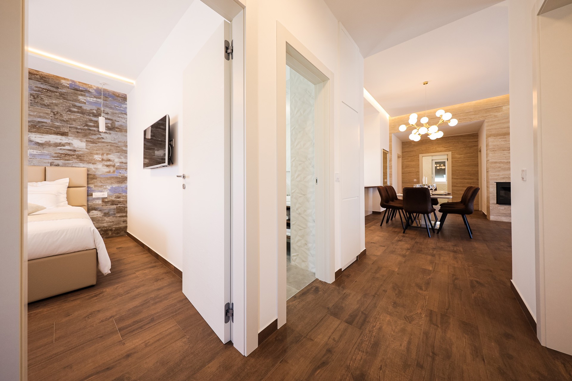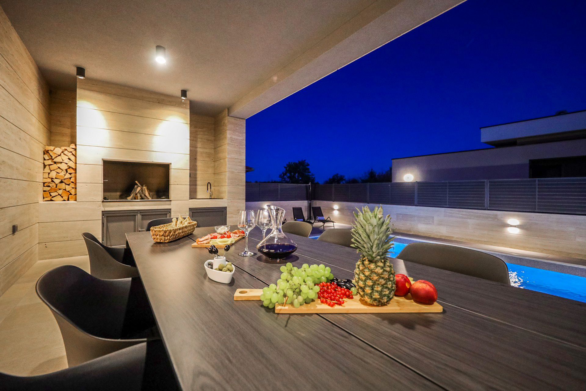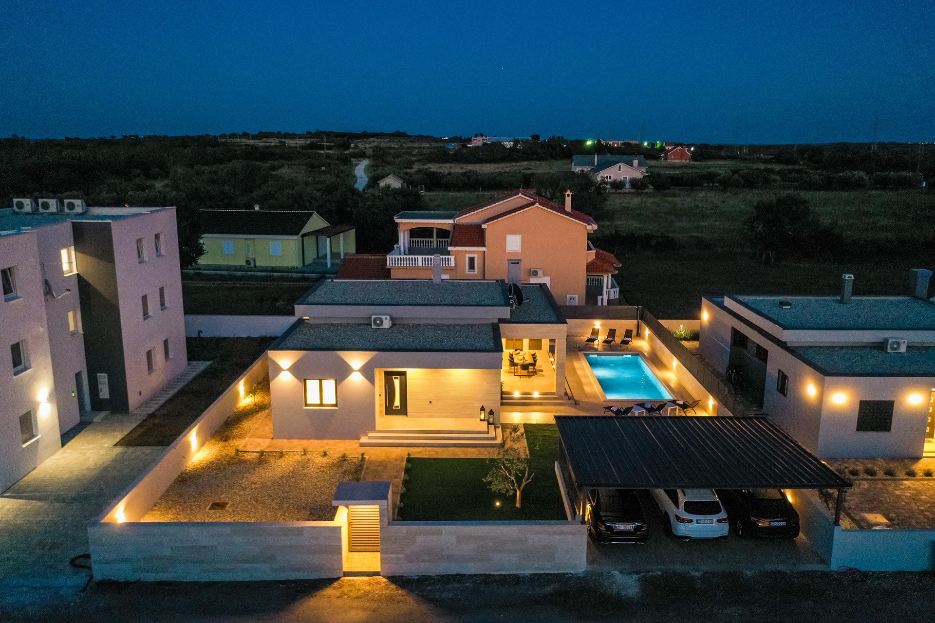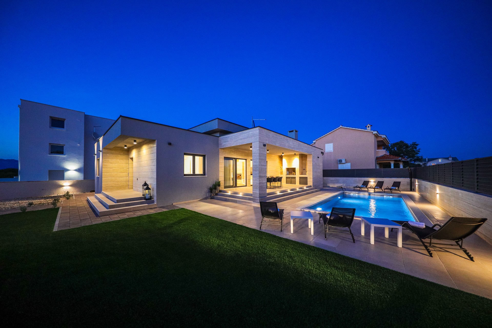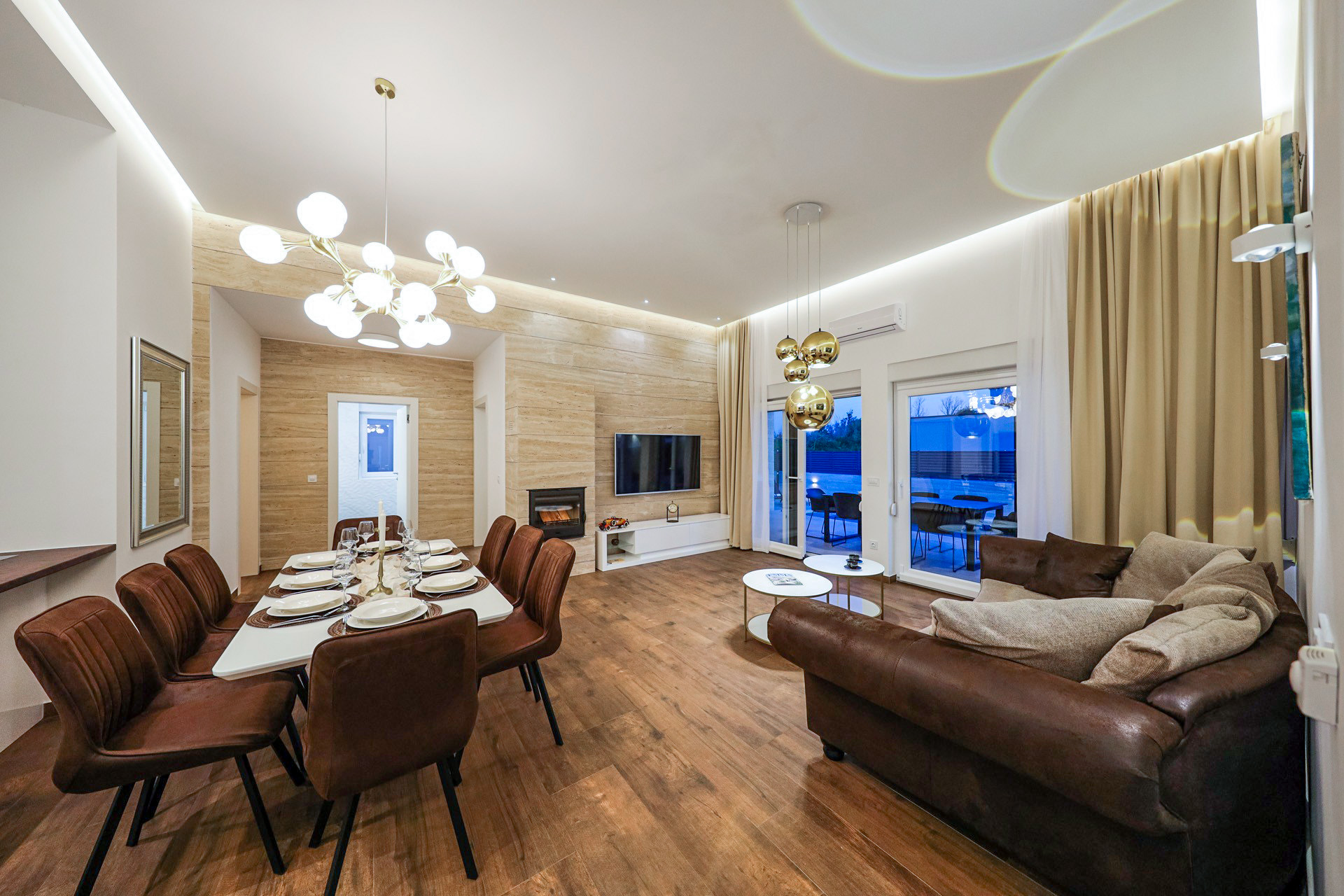 The modern newly built Villa Antonela has 4 luxury bedrooms with 2 singles and 3 double beds, and a sofa in the living room that can also serve as an extra bed for one person. (8 + 1) The villa has two modern and functional bathrooms with shower. In the garden there is a swimming pool with sun loungers which is fully fenced to ensure your privacy and peace. The youngest will enjoy playing in the pool, and are provided with mini goals for the pool and outdoor use, luftici and Play station.