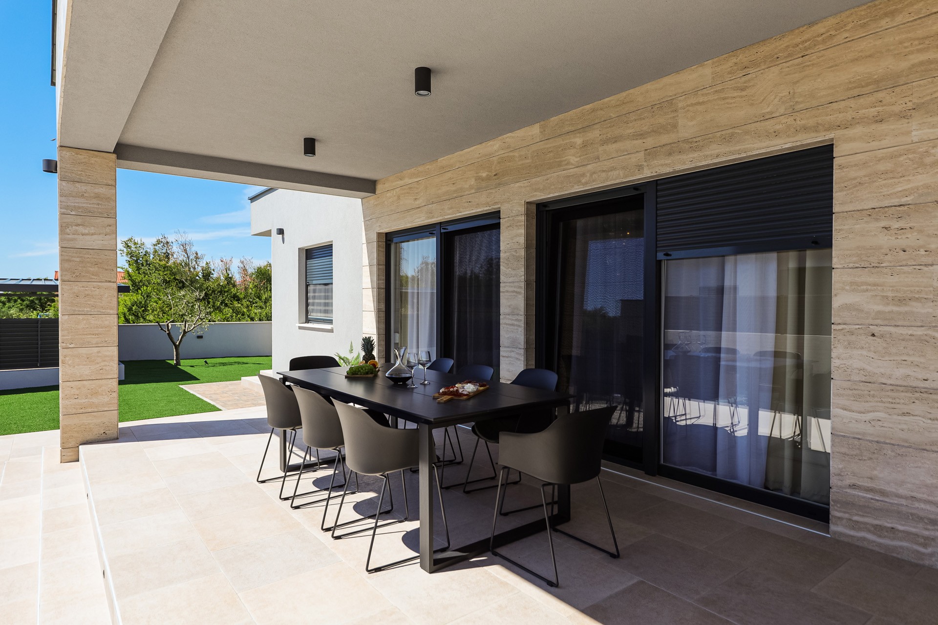 You can enjoy delicious dishes from the kitchen in the indoor and outdoor dining room with 8 seats. You can also prepare delicious meals on the outdoor charcoal grill. You can experience a rich gastronomic offer in many restaurants and taverns located in Nin. Inside the yard there are 3 parking spaces, and outside the yard there is another parking space. In addition to having this beautifully decorated holiday villa at your disposal, you are also in an excellent location that provides you with a variety of activities such as wine tours, rafting, aquapark, cycling, sailing and horseback riding. You can also get to know the Dalmatian tradition through olive oil tours, visits to the salt museum or on a donkey farm. Do not forget to visit Plitvice Lakes, beautiful Zadar, Kornati and other islands of the Zadar archipelago